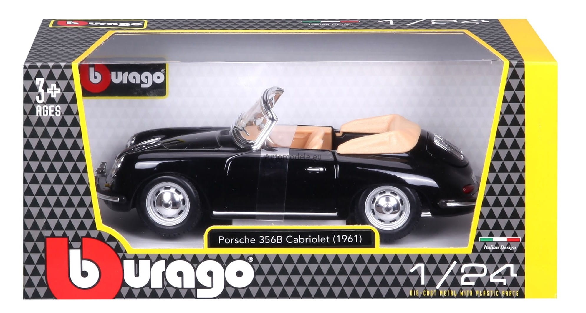 Model samochodu Porsche 356B Cabriolet z 1961 roku w skali 1:24 od Bburago. Numer katalogowy: 22078Bk
