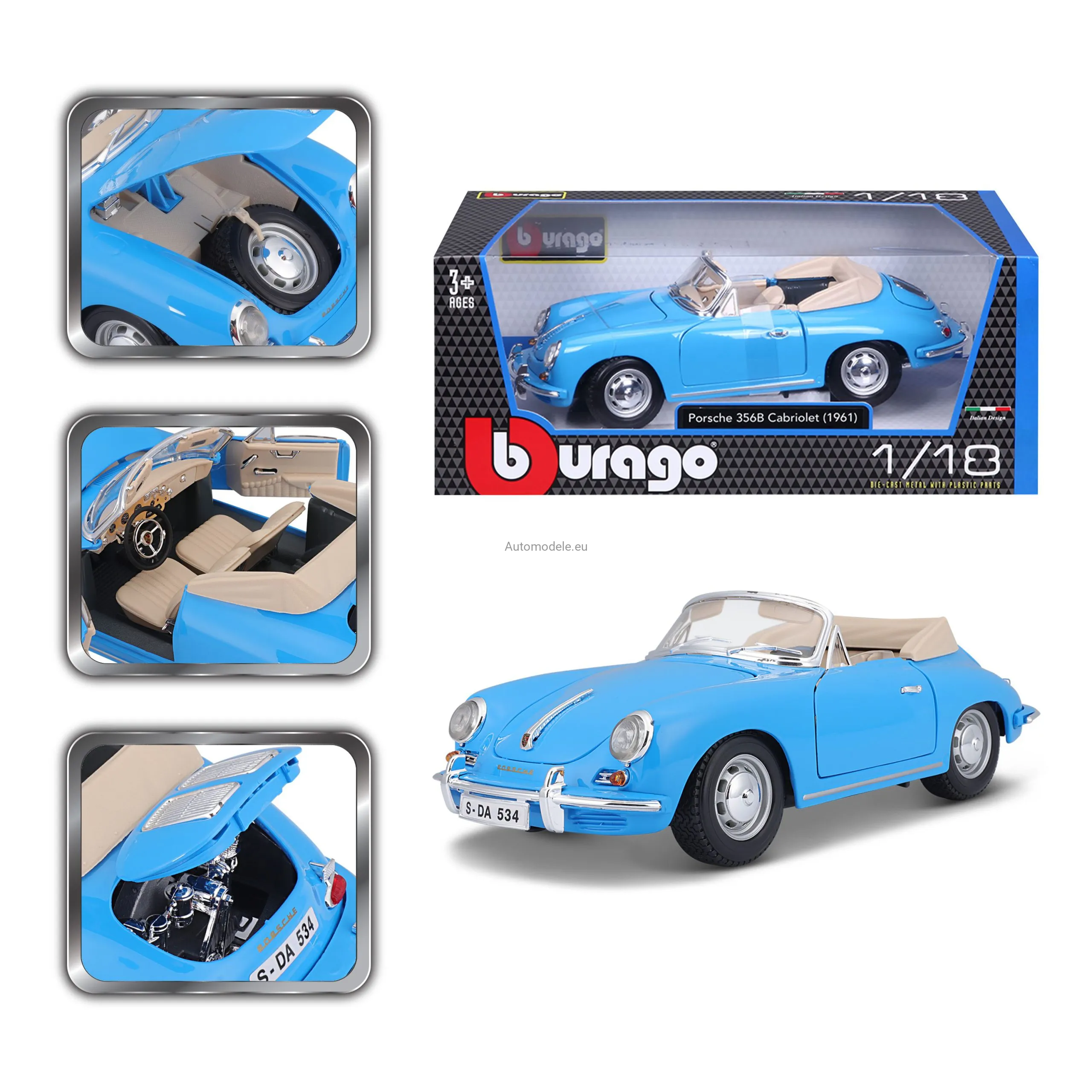 Model samochodu Porsche 356B Cabriolet z 1961 roku w skali 1:18 od Bburago. Numer katalogowy: 12025