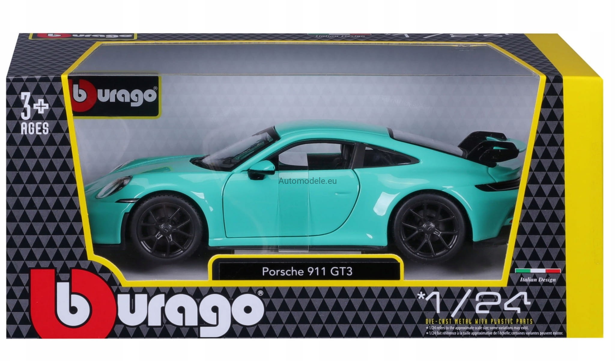 Kolekcjonerski metalowy model samochodu Porsche 911 (992) 992 GT3 Coupe z 2021 roku w skali 1:24 od Bburago