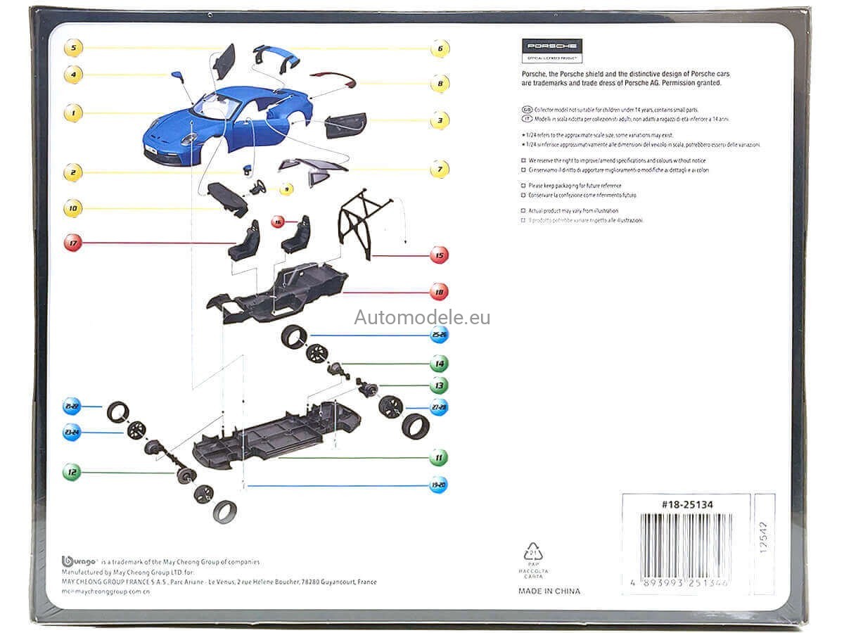 Porsche 911 (992) GT3 2022 Blue - Model do Składania Złożenia Bburago KIT 1:24