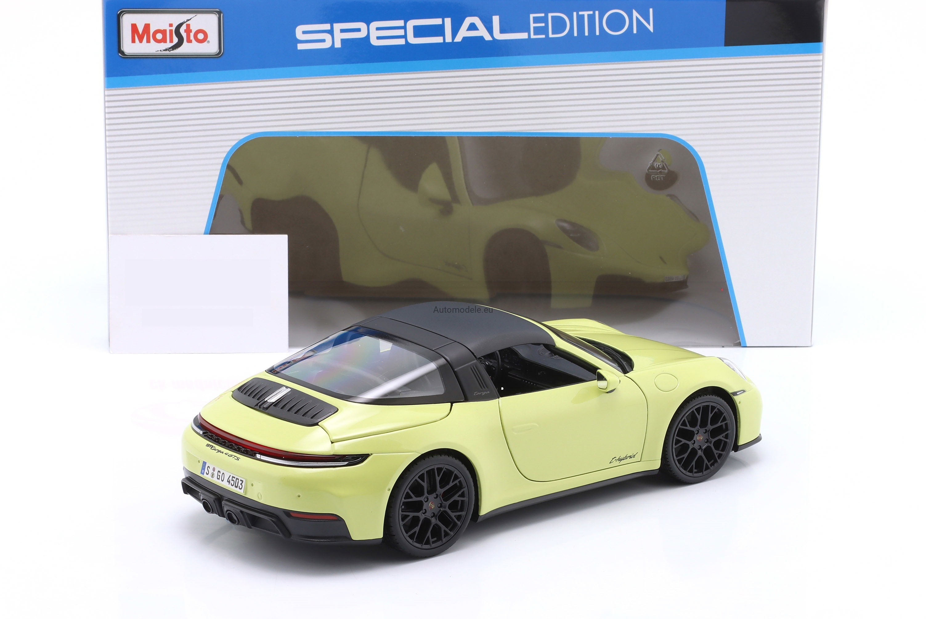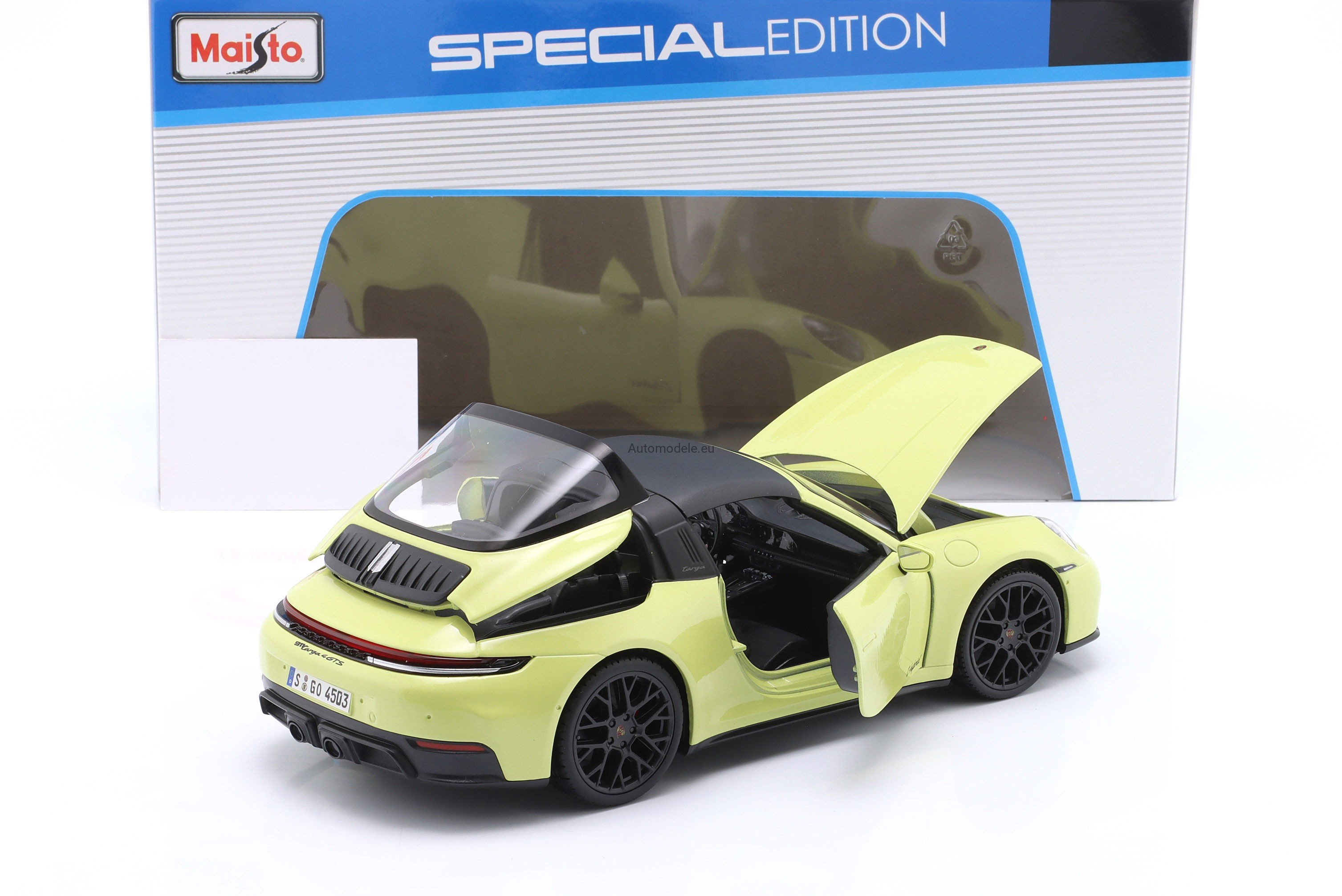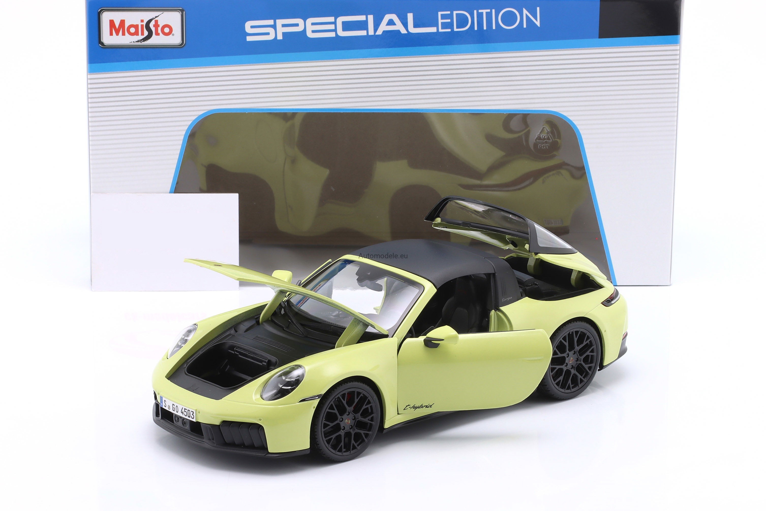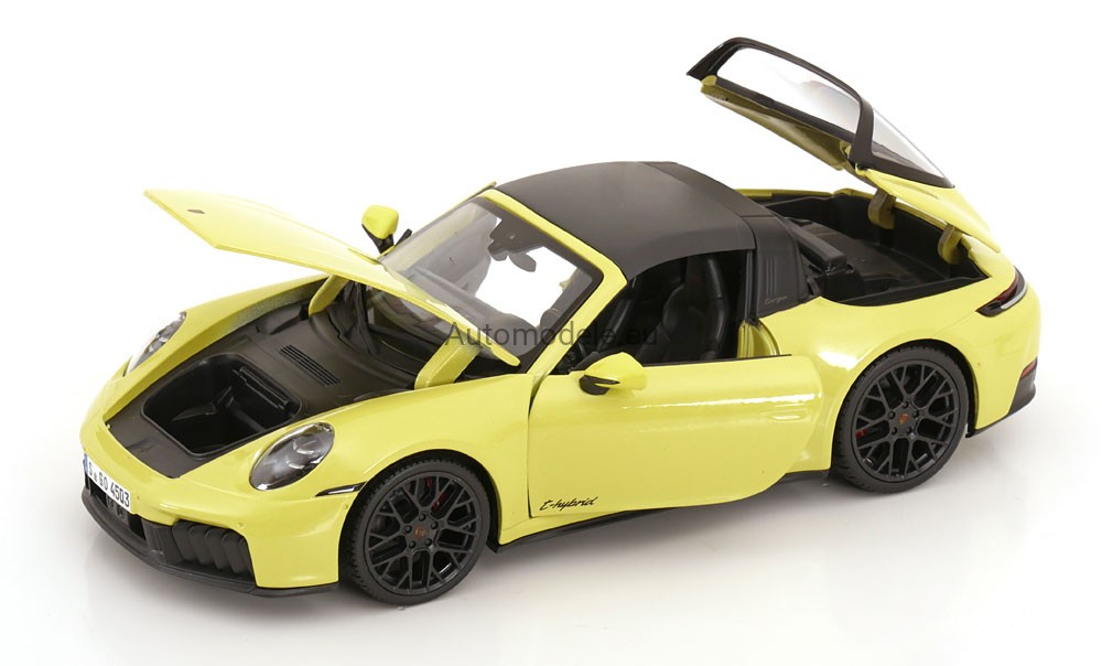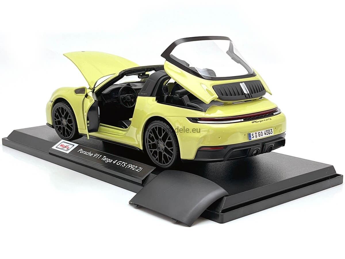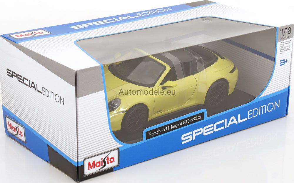 Kolekcjonerski metalowy model samochodu Porsche 911 (992.2) 992-2 Targa 4 GTS T-Hybrid z 2025 roku w skali 1:18 wyprodukowany przez firmę Maisto