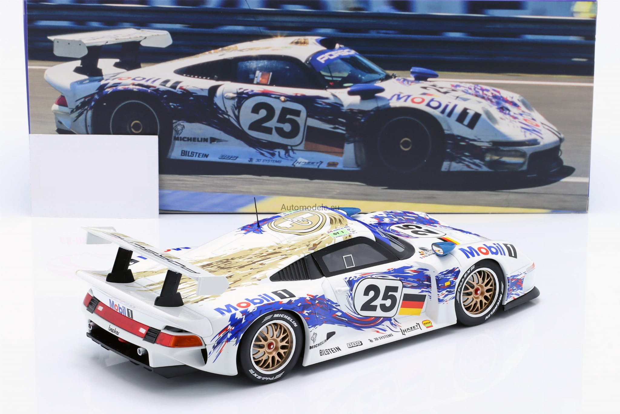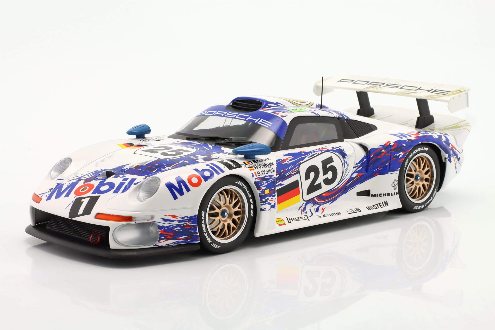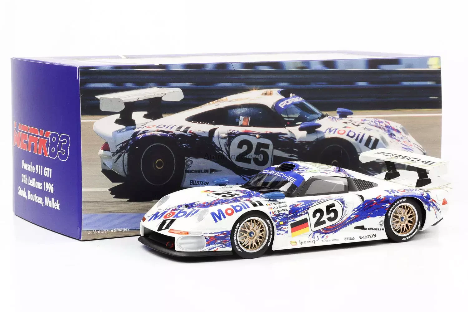 Kolekcjonerski metalowy model samochodu Porsche 911 GT1 #25 2nd 24h LeMans - Stuck, Boutsen, Wollek z 1996 roku w skali 1/18 wyprodukowany przez firmę WERK83
