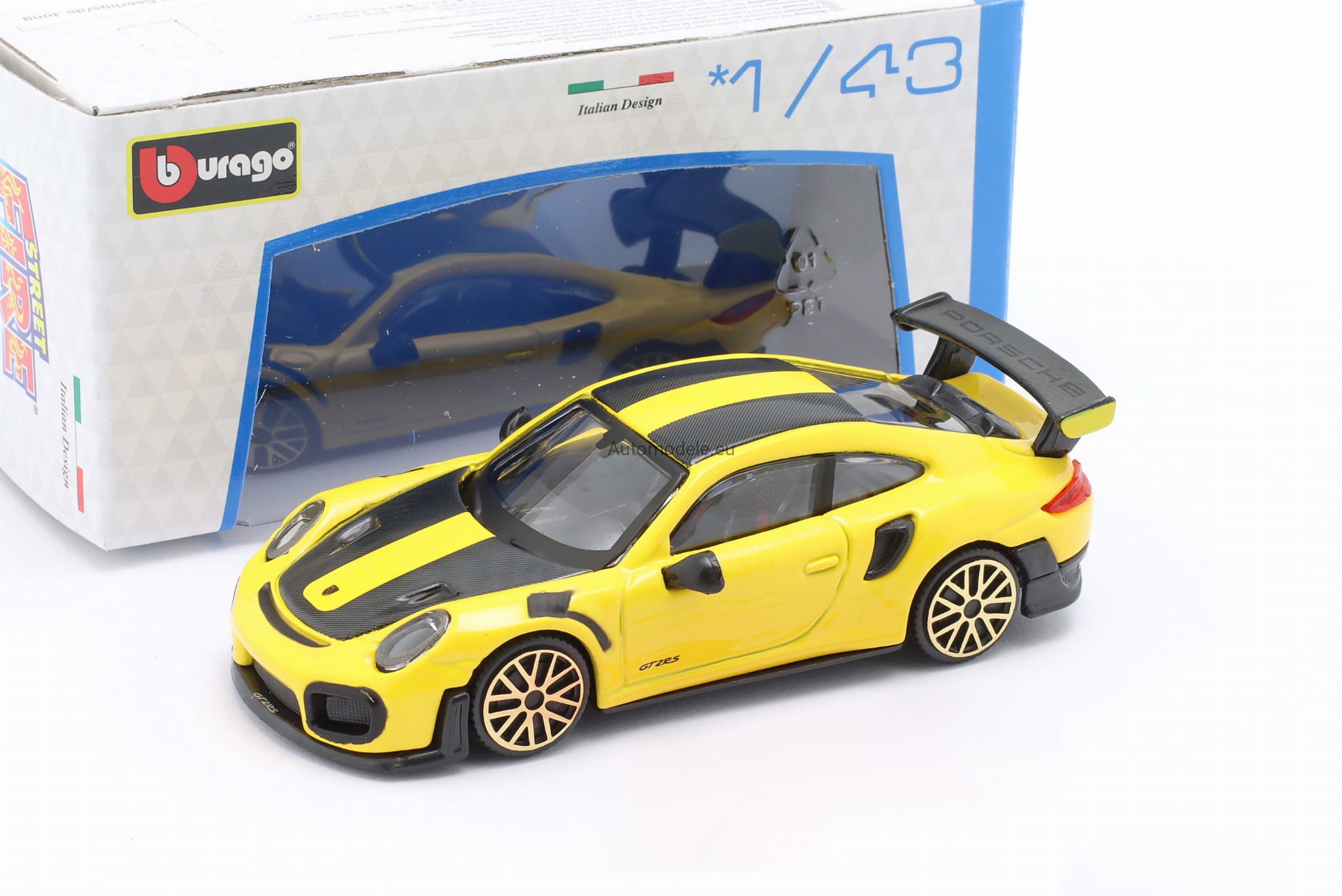 Kolekcjonerski model samochodu Porsche 911 GT2 RS z 2018 roku w skali 1:43 od Bburago