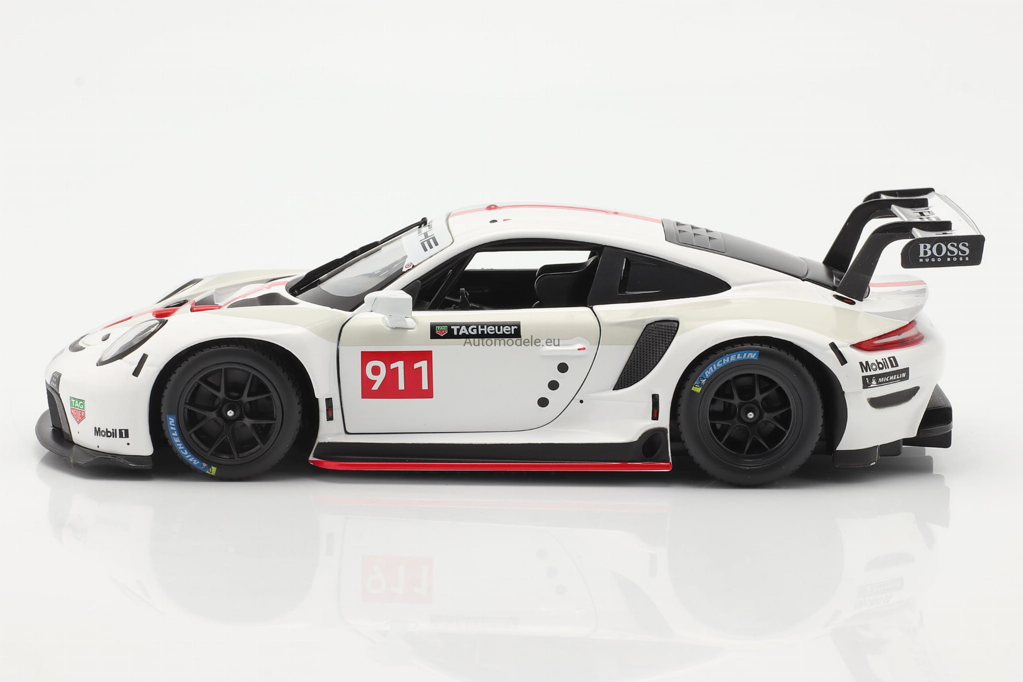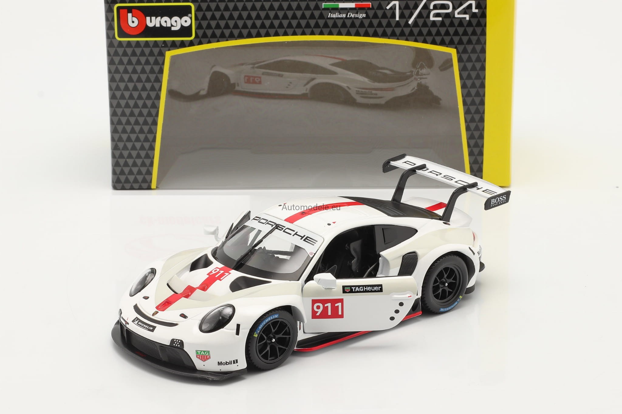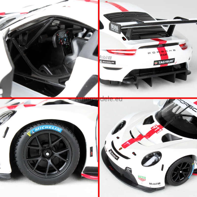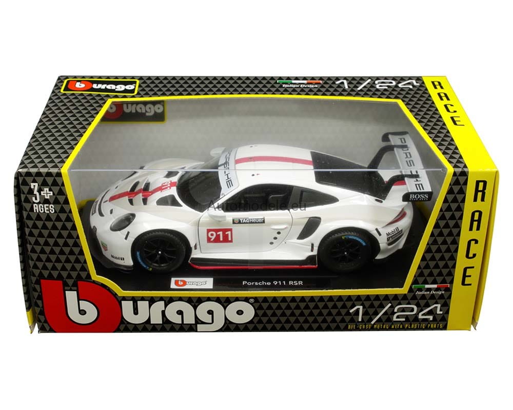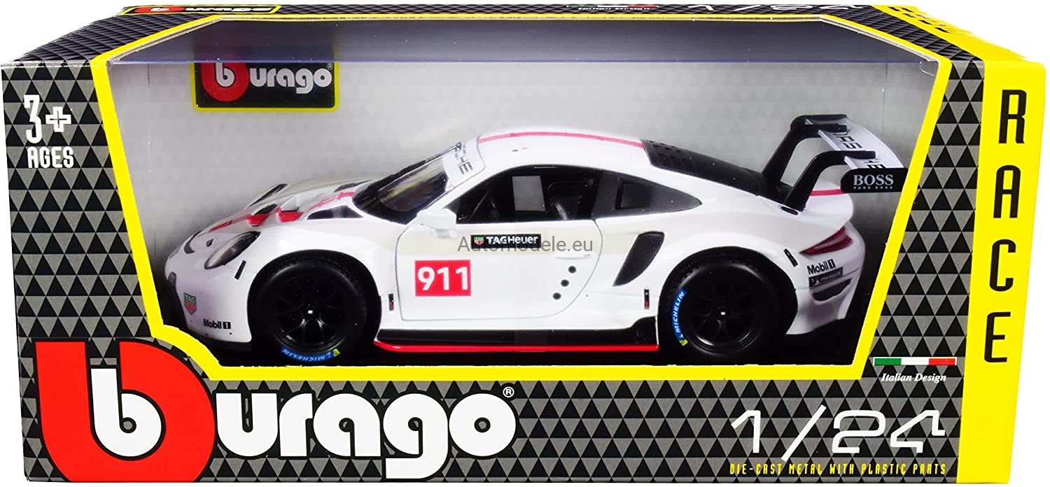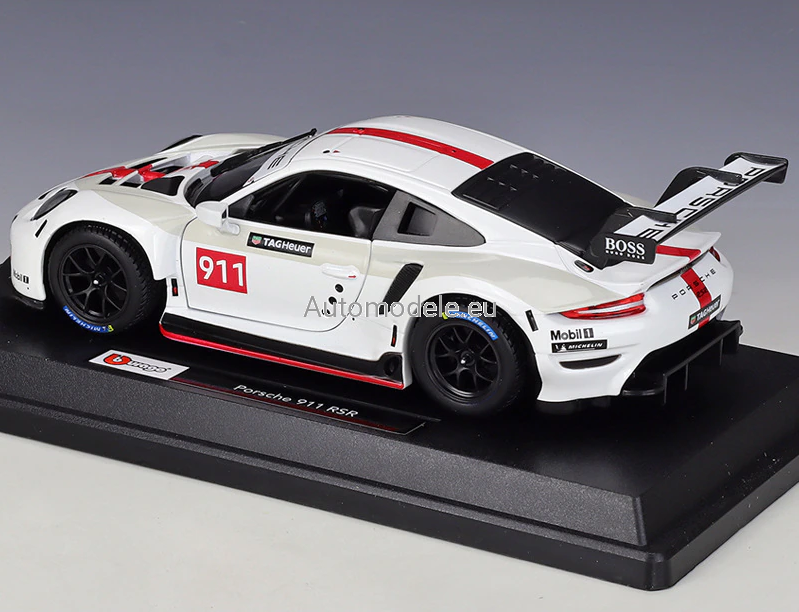 Kolekcjonerski metalowy model samochodu Porsche 911 RSR GT #911 Racing Race Series w skali 1:24 od Bburago. Numer katalogowy: 28013 / 18-28013