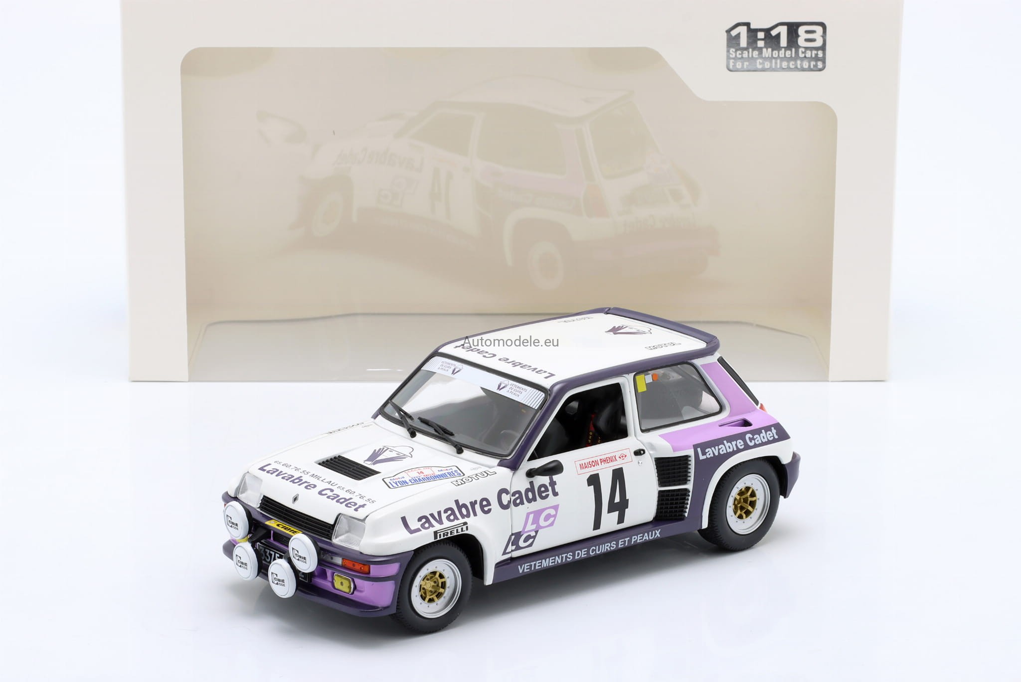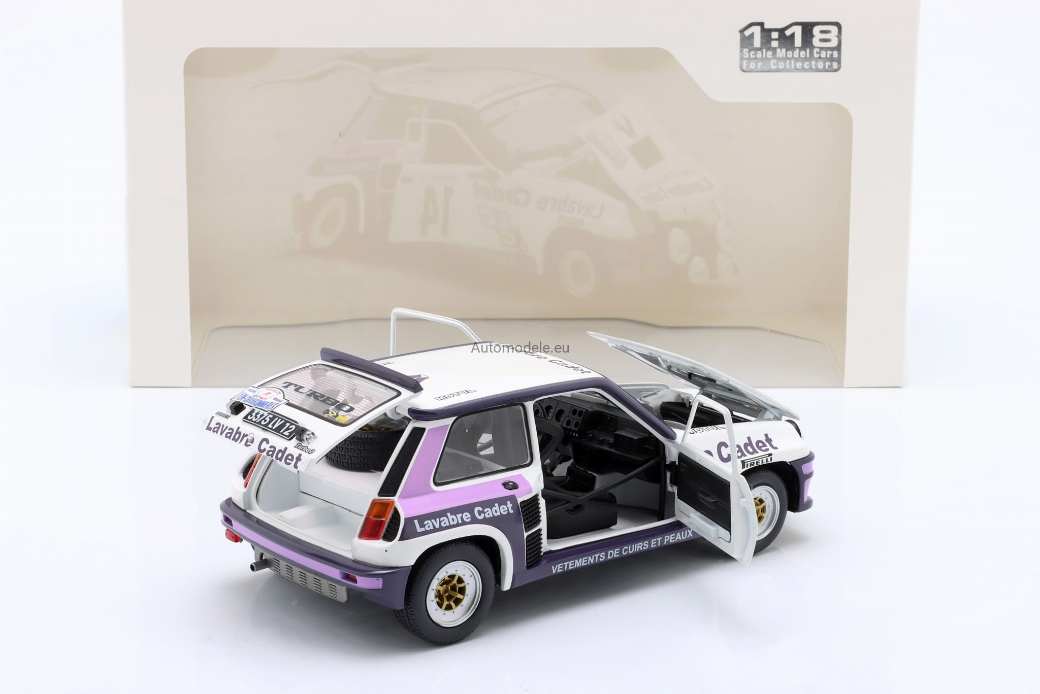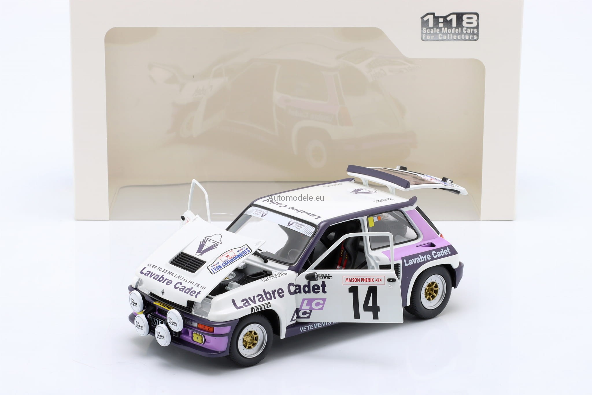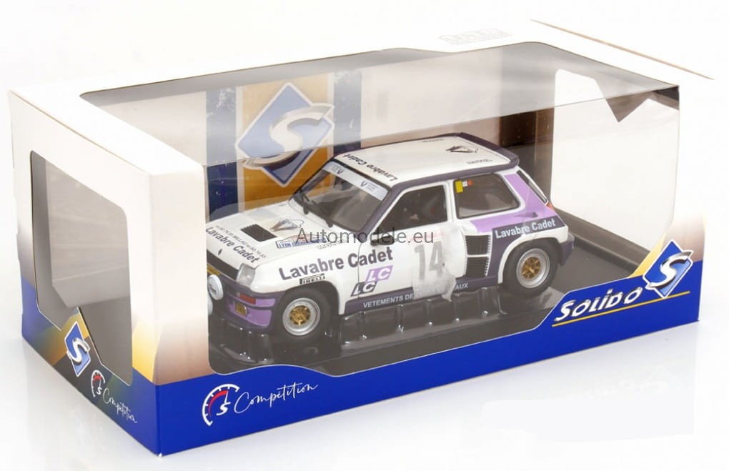 Kolekcjonerski model samochodu Renault 5 R R5 Turbo #14 Rallye Lyon-Charbonniers - D. Auriol / J-Y. Tussiot z 1983 roku w skali 1:18 od Solido.