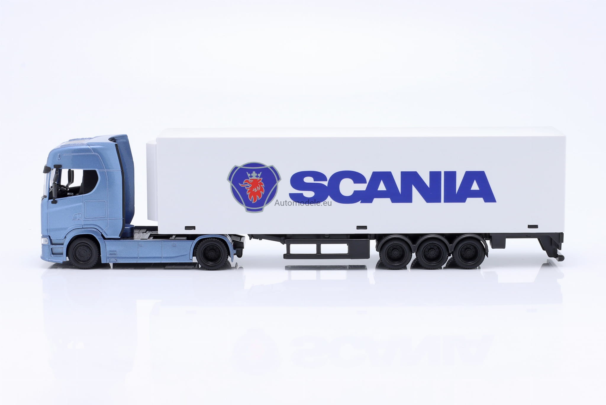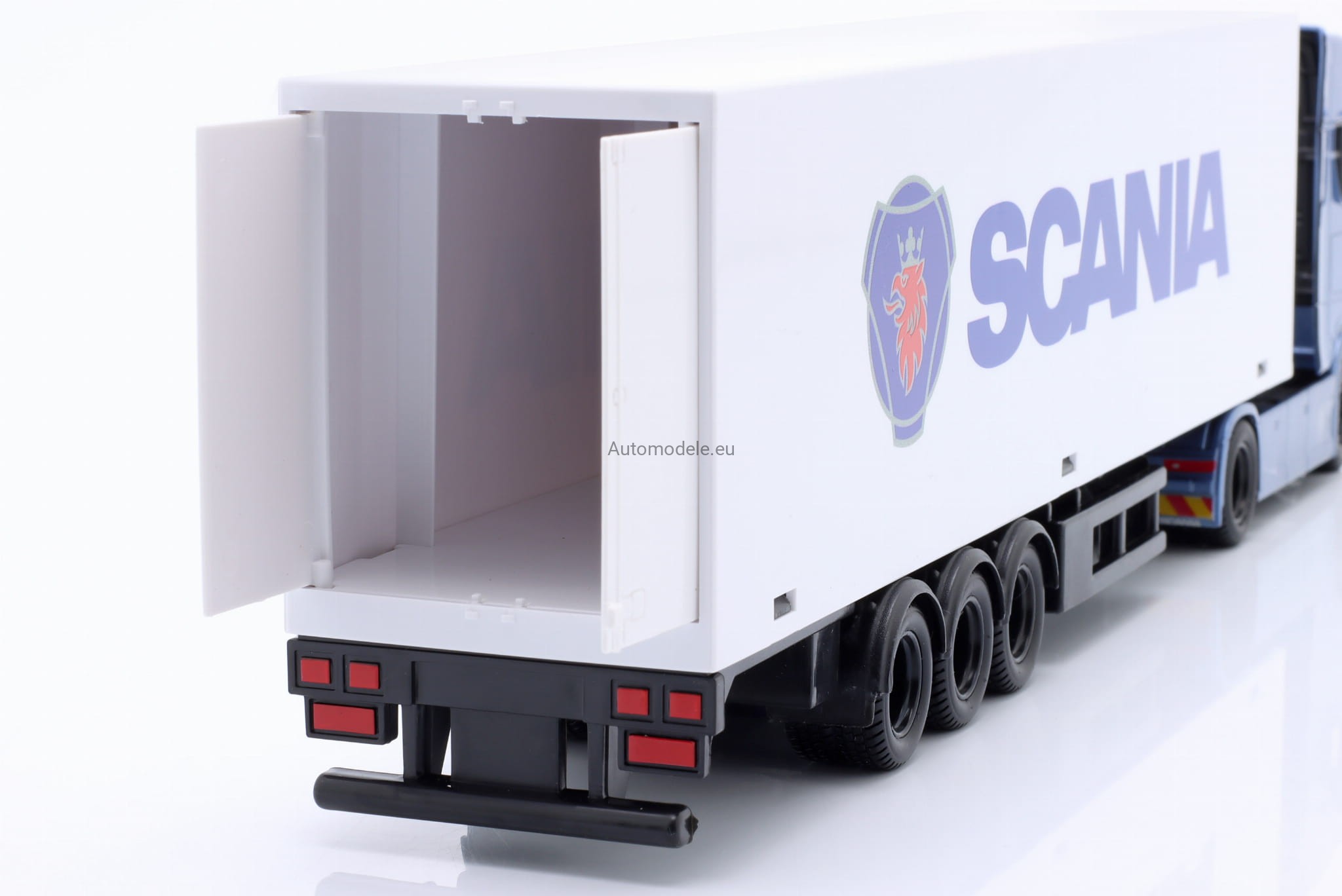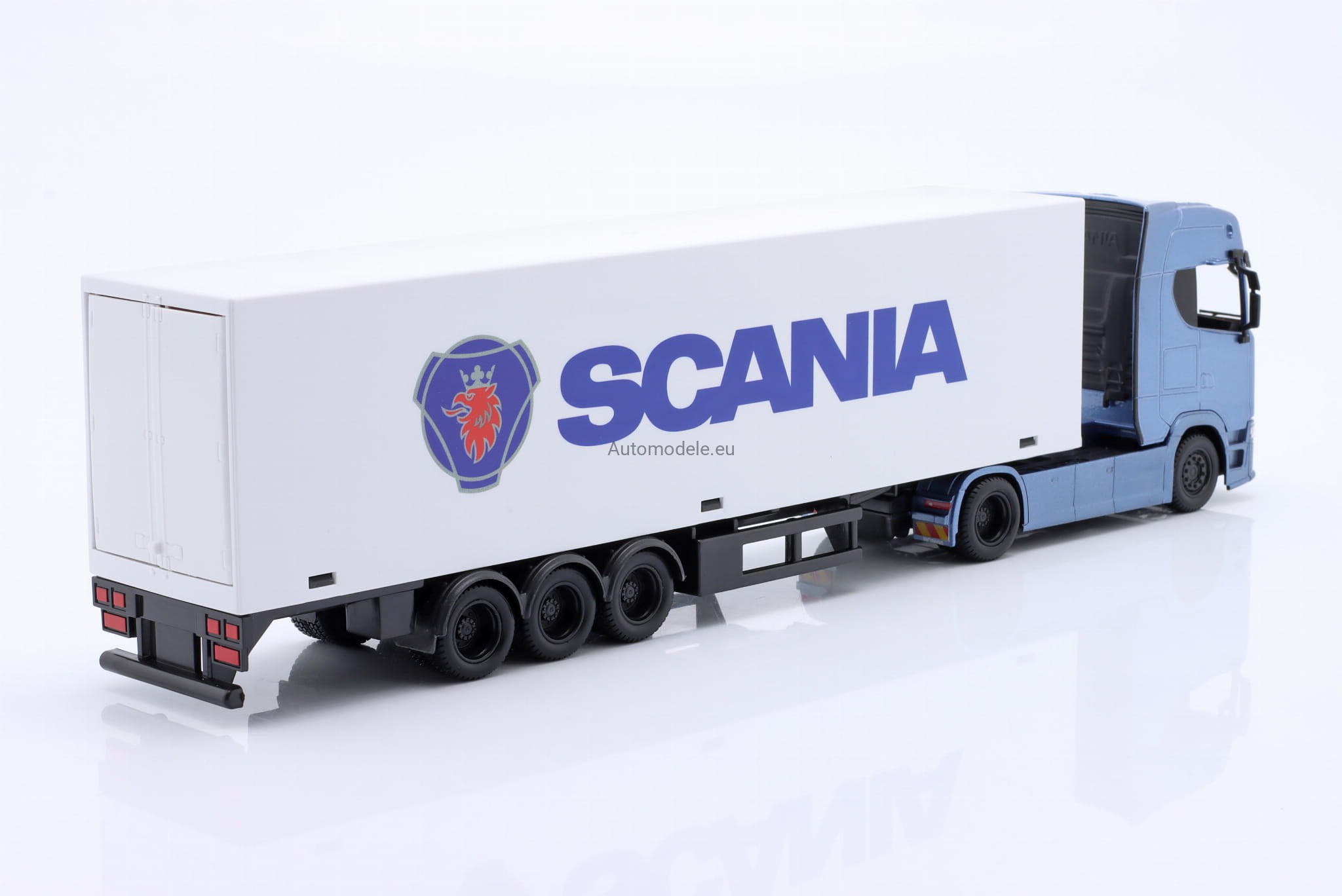 Model metalowo - plastikowy. Karoseria wykonana z metalu, lakierowana oryginalnymi lakierami samochodowymi. Naczepa wykonana jest z plastiku.
