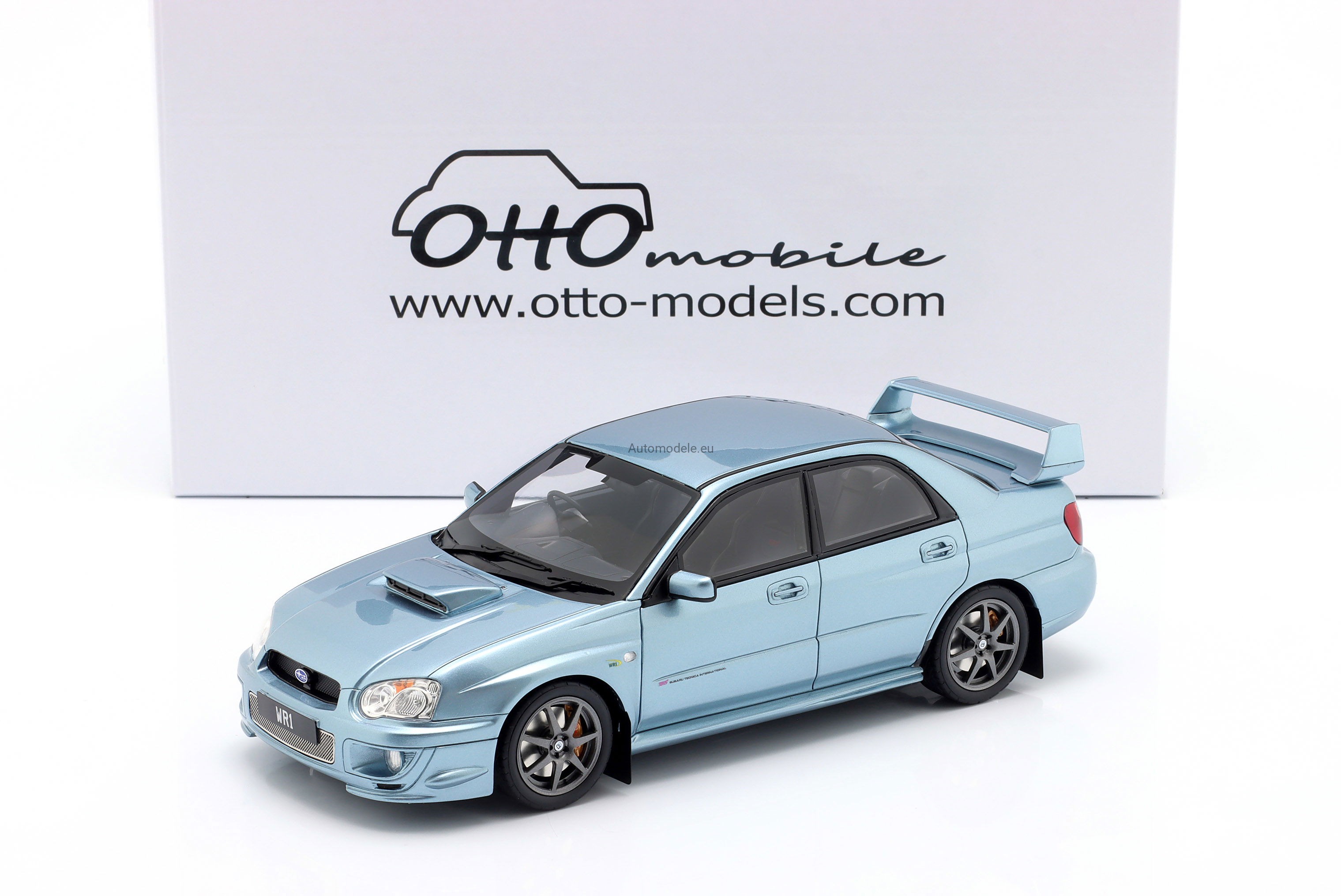 Subaru Impreza WRX Sti WR1 P. Solberg Edition 2003 Ice Blue Metallic Otto Mobile 1:18