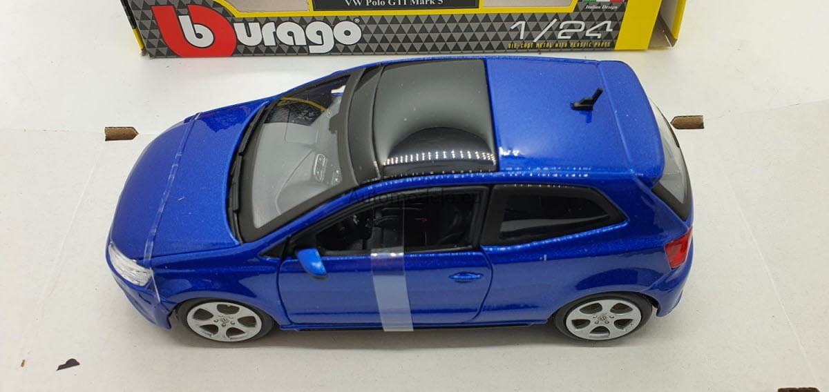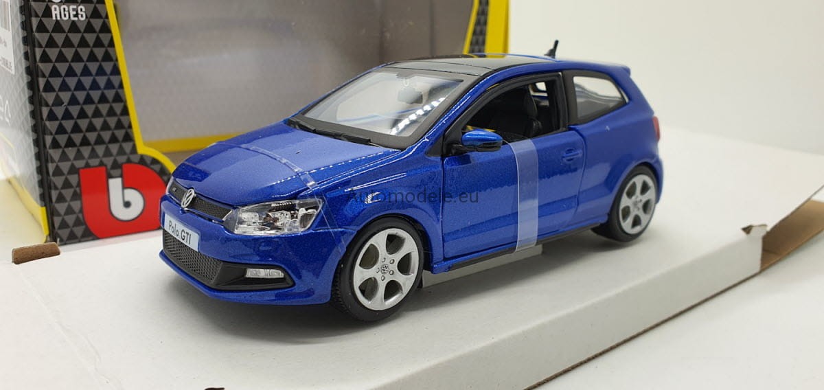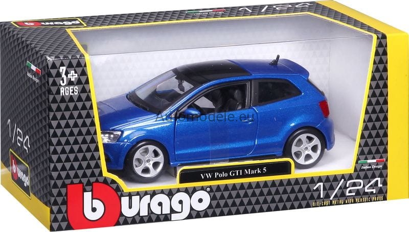 Model samochodu Volkswagen Polo GTI w skali 1:24 od Bburago. Numer katalogowy: 21059