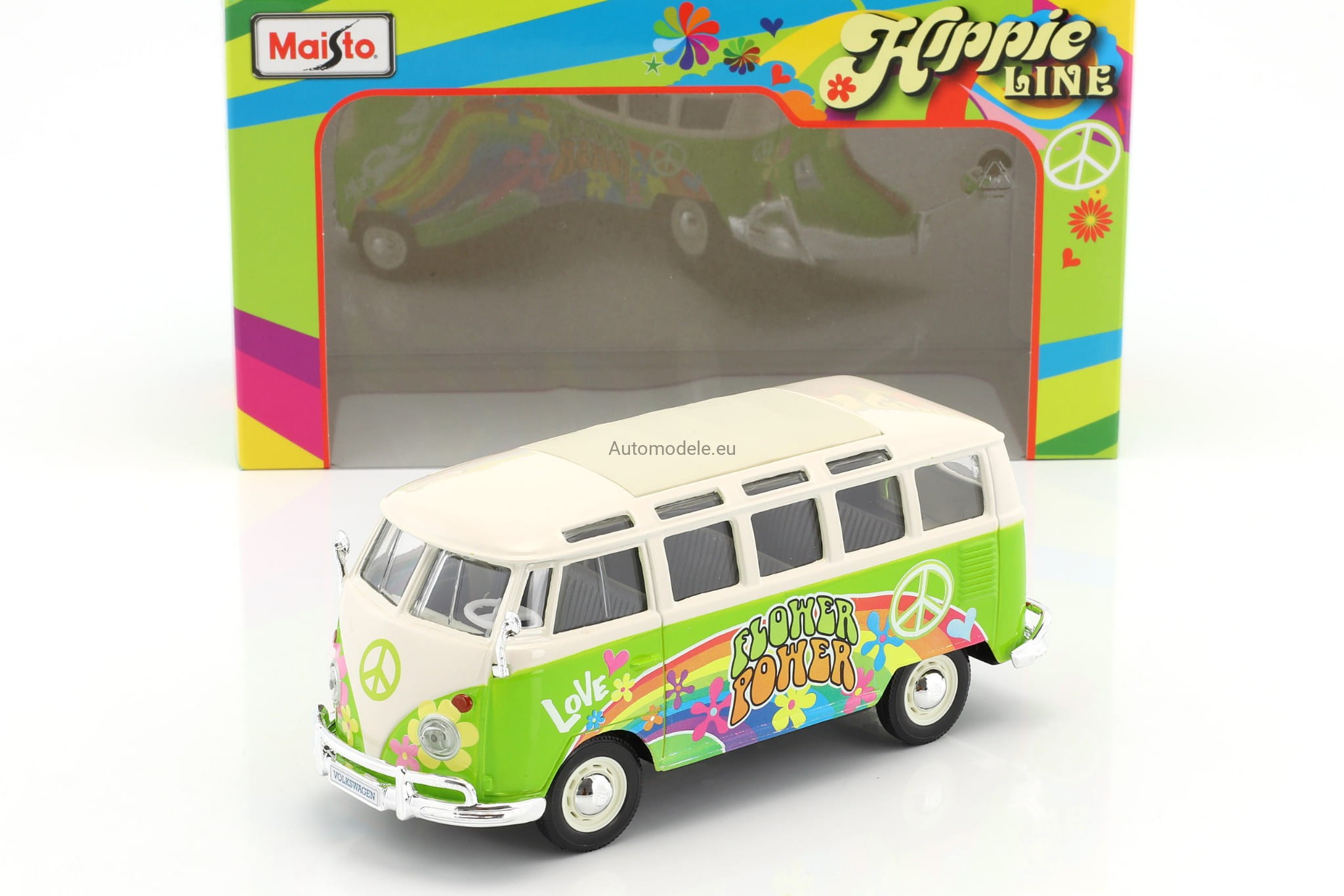 Volkswagen VW T1 Samba Bus Hippie Line Flower Power Maisto 1:25