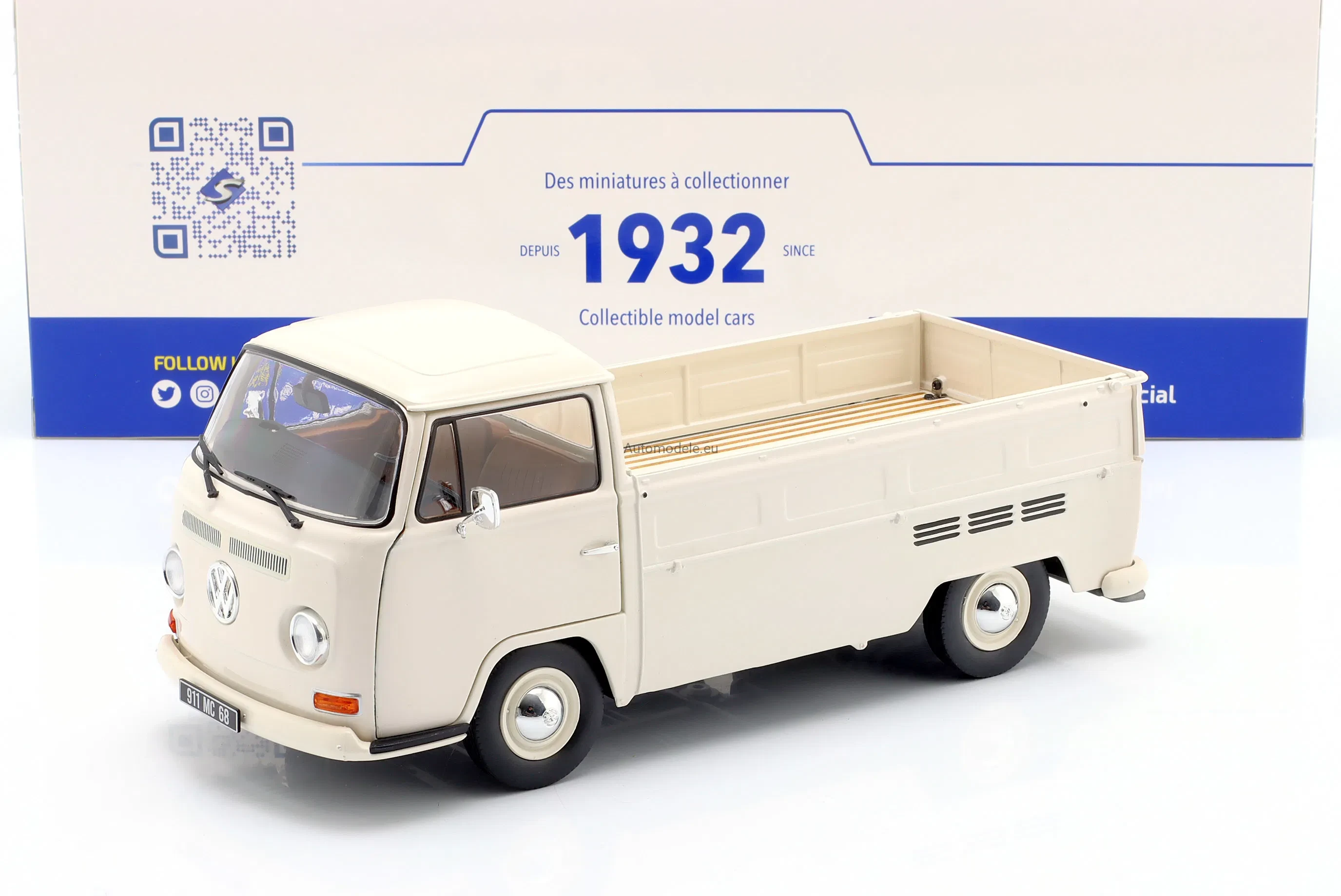 Kolekcjonerski metalowy model samochodu Volkswagen VW T2 Pick-Up PickUp Porsche Racing Service z 1968 roku w skali 1:18 od Solido
