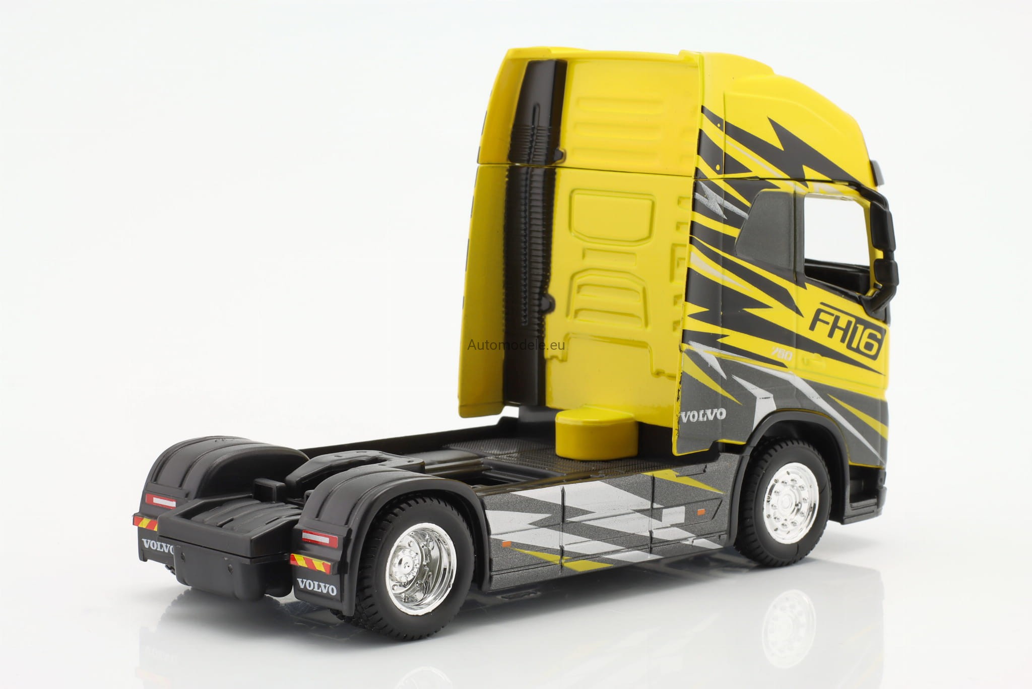Model ciągnika siodłowego Volvo FH16 Globetrotter 750 XXL wykonany jest z metalu z dodatkiem plastiku oraz posiada gumowe opony.