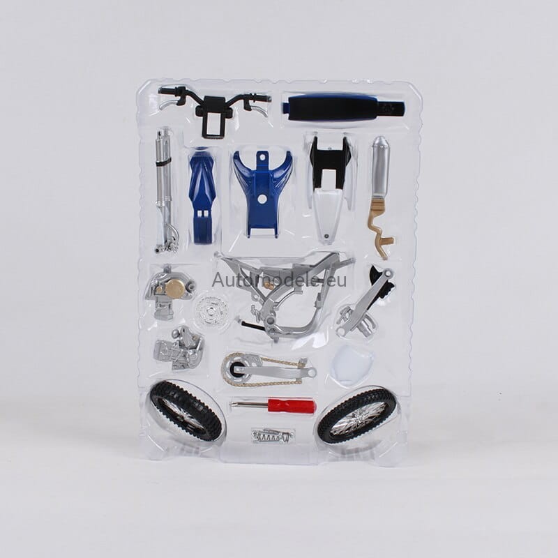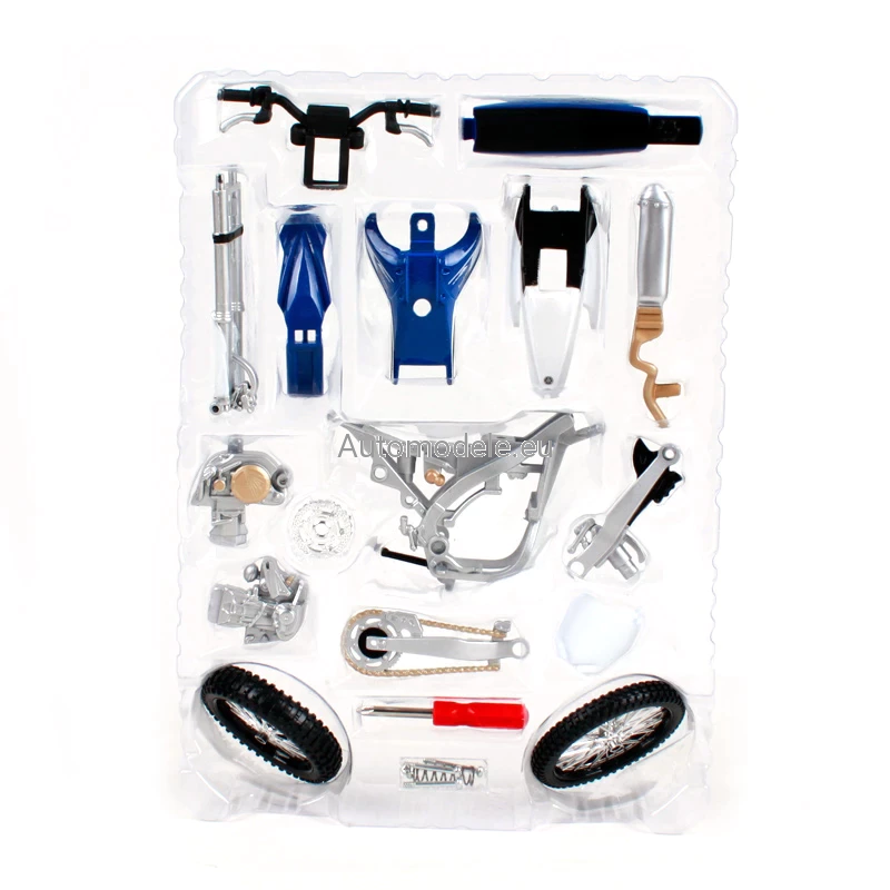 Motocykl do składania w skali 1:12. Zestaw zawiera ok. 20 elementów oraz akcesoria potrzebne do złożenia motocykla. Nie wymaga żadnych dodatkowych narzędzi.